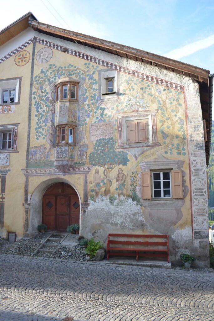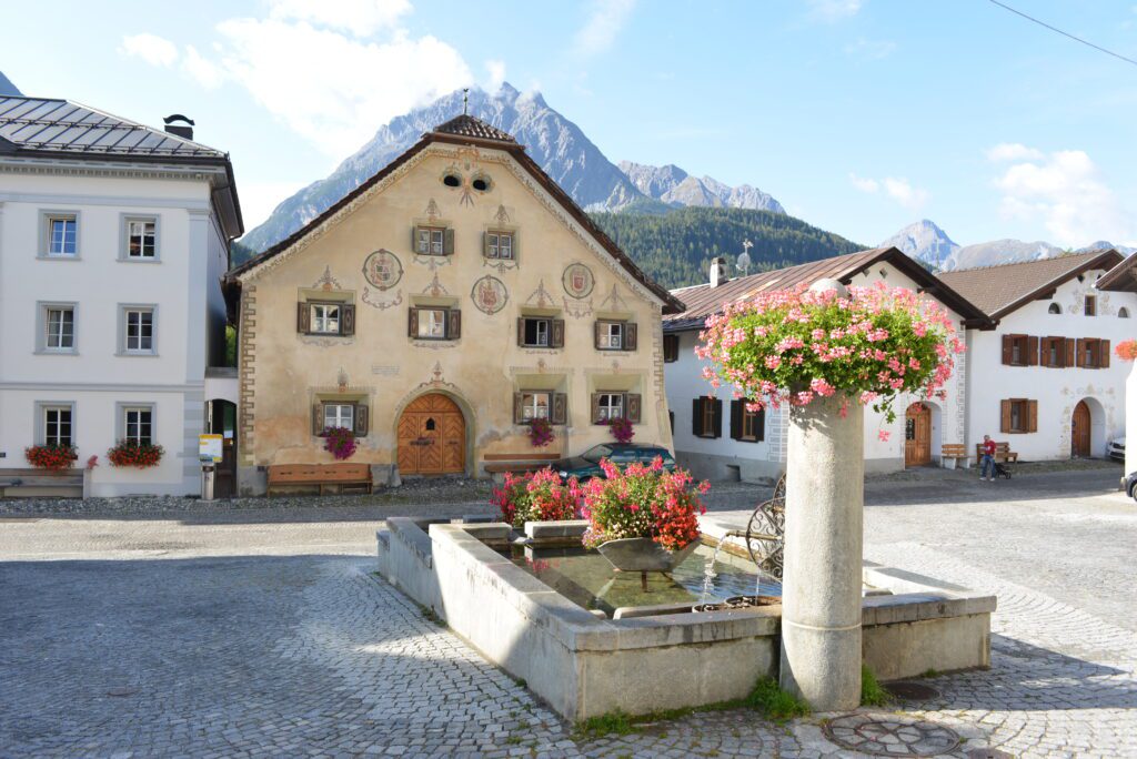 Autour de Scuol, tous les villages de cette région sont de pures merveilles. Chaque maison est décorée par la fameuse technique des sgraffitis. Des motifs géométriques et floraux encadrent des dictons ou des proverbes écrits en langue romanche.
