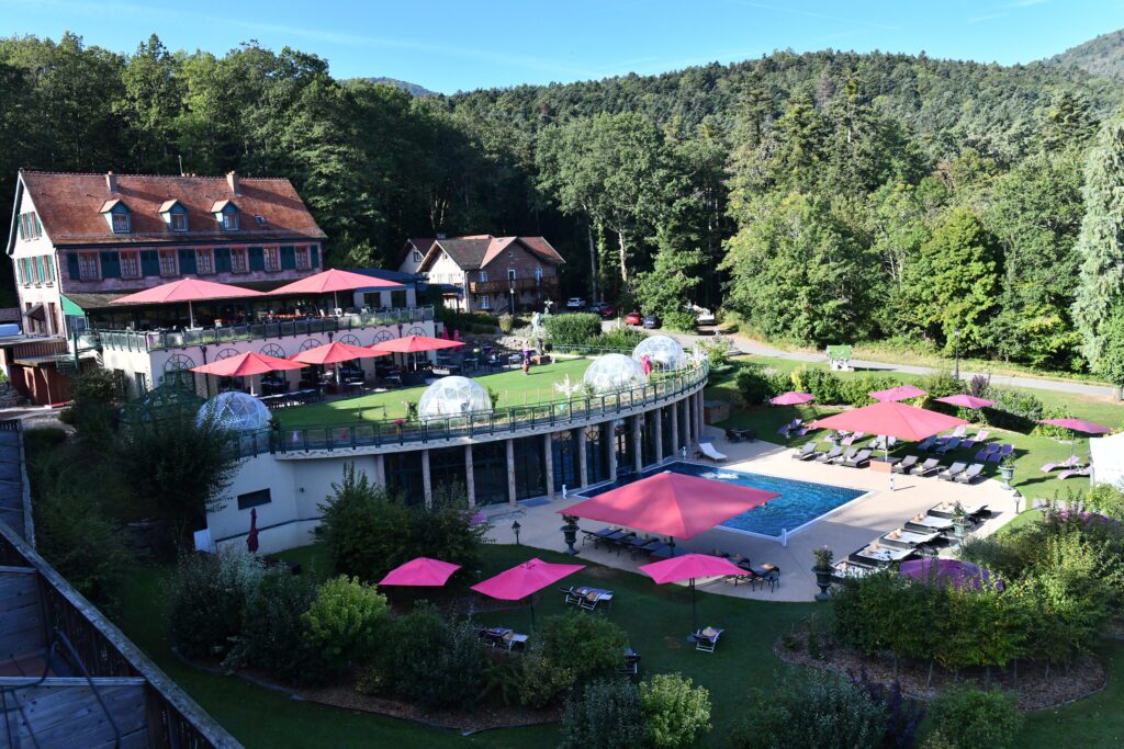 Sur la base d’un hôtel « alsacien » traditionnel, plusieurs extensions ont été développées. Pas moins de 57 chambres et suites vous attendent pour un séjour strictement confidentiel. Tous les aspects du confort d’un 4 étoiles sont réunis dans cet écrin de verdure en moyenne altitude. Le luxe c’est le calme, l’air et le temps. La source d’eau minérale de Wattwiller est située à deux ou trois kilomètres au sud. Mais la cave de l’établissement n’est pas vraiment dans le registre des eaux minérales.
