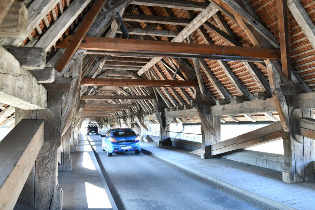 À l’entrée occidentale de la localité se trouve un pont de bois datant de 1568 qui franchit l’ancienne rivière Aar. Il s’agit d’un pont couvert à quatre travées et à fermes triangulaires qui est supporté par des piles en pierre. Les masques allégoriques sculptés sur les travées étaient censés éloigner les mauvais esprits des eaux.
