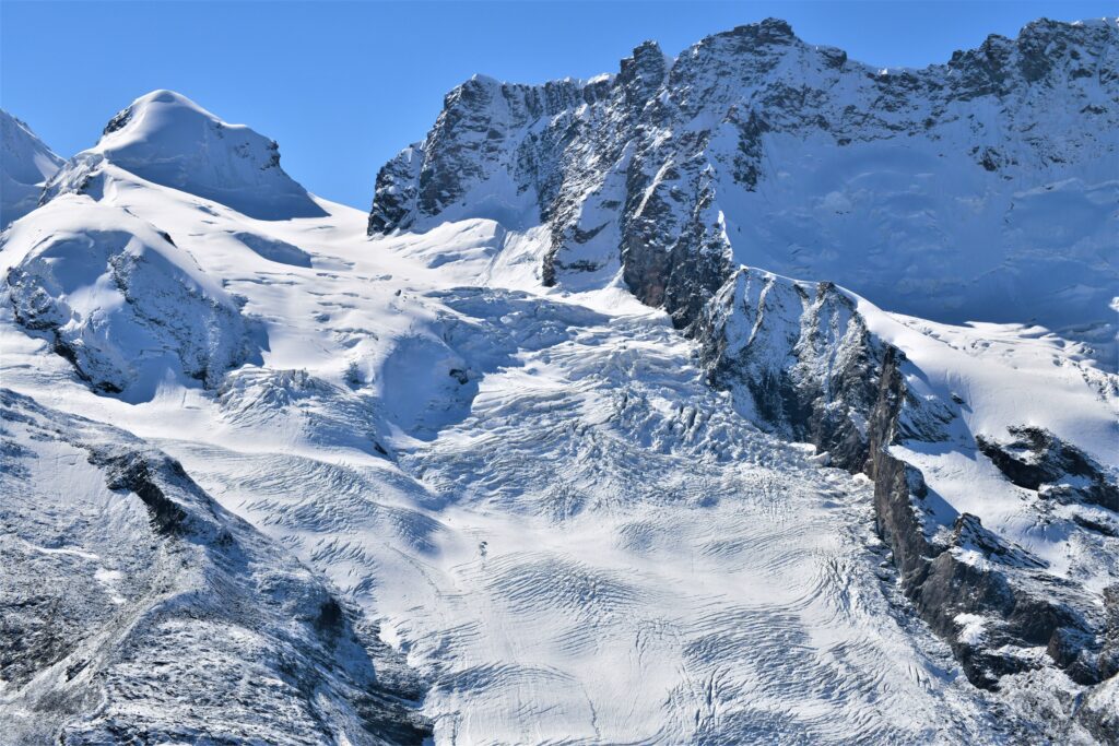 L’autre départ se trouve à l’extrémité de la station en remontant la vallée. Vous y trouverez facilement la station de téléphérique Matterhorn glacier Paradise. Depuis 2018, ce téléphérique à trois câbles est le plus élevé du monde. Il assure la liaison en une demi-heure avec la station terminale accrochée à 3 883 mètres. Le panorama sur les sommets italiens, français et suisses y est réellement époustouflant, à couper le souffle comme l’écrivent trop souvent les mauvais journalistes en panne d’inspiration, mais ici l’oxygène étant vraiment réduit, il convient de procéder lentement ! Il est évidemment indispensable de faire ces deux excursions par temps totalement clair.