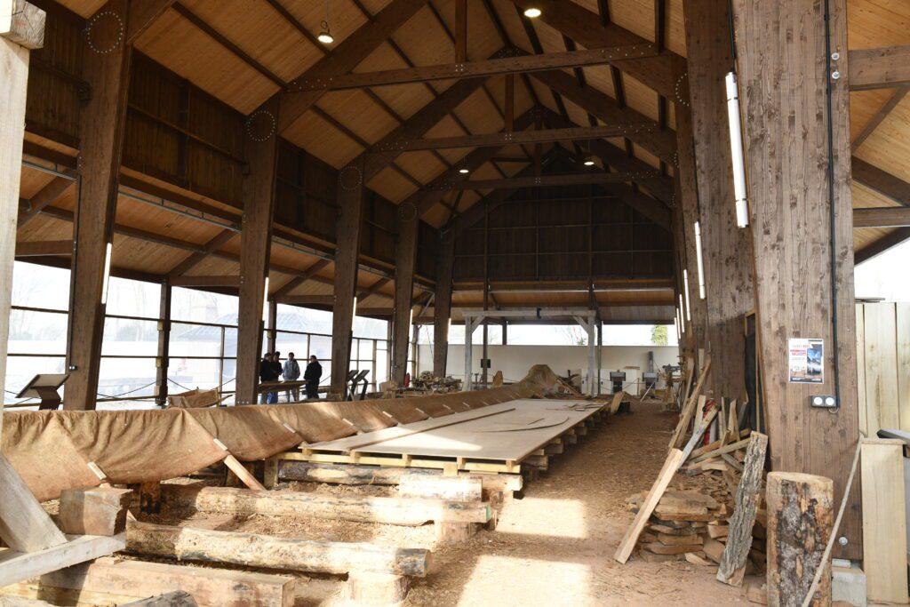 Ici le chantier présente toute une démarche pédagogique pour expliquer et raconter cette aventure médiévale qui a changé l’histoire de l’Europe. Ce chantier est inspiré de celui de l’Hermione à Rochefort et ce celui de l ‘Albaloa à Pasai Bonibane au Pays Basque espagnol.