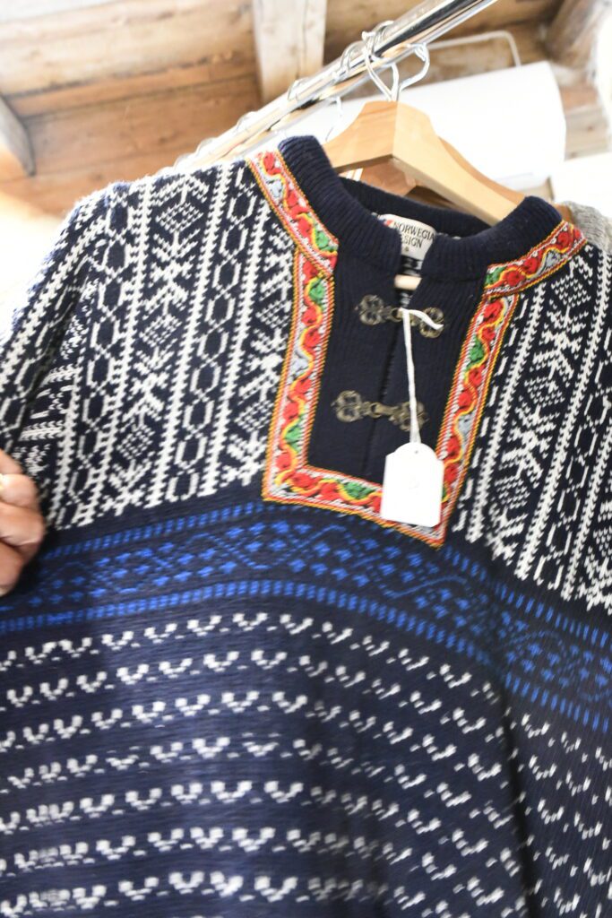 La boutique expose de sublimes pulls et vestes en laine filée, tricotés dans le style nordique que l’on retrouve en Norvège et en Islande.